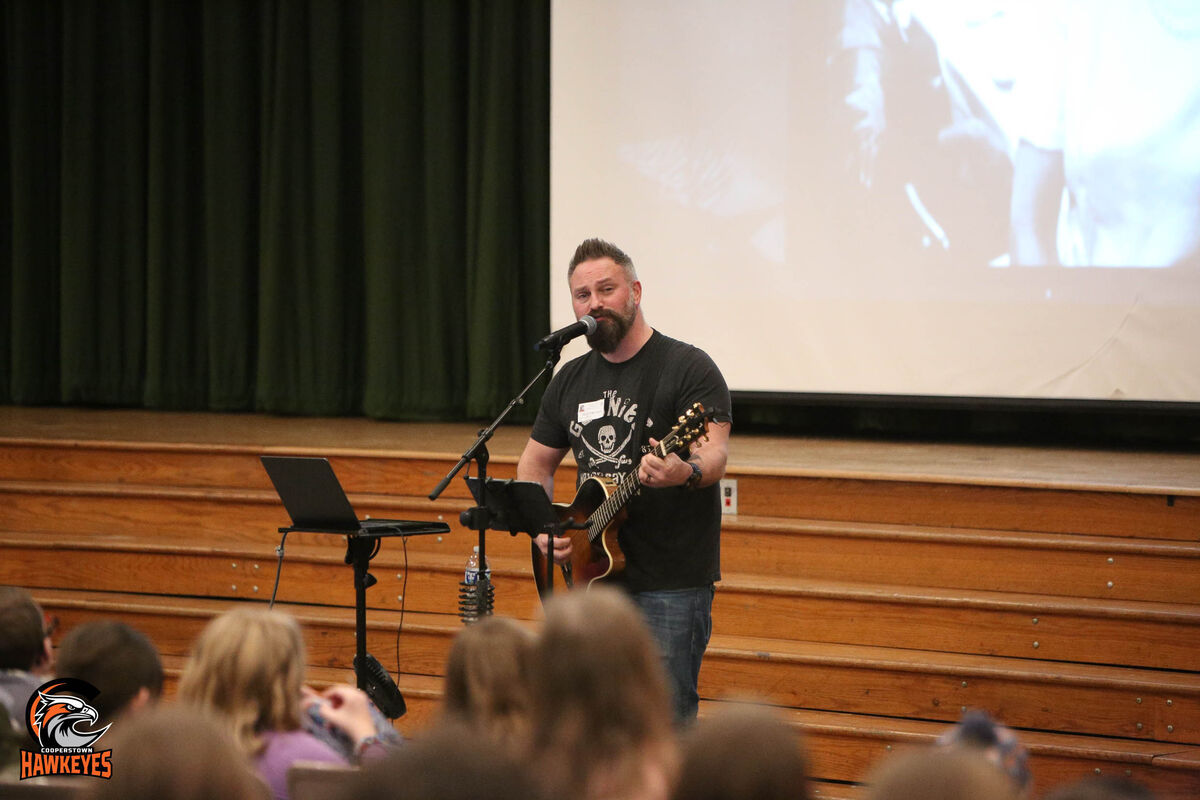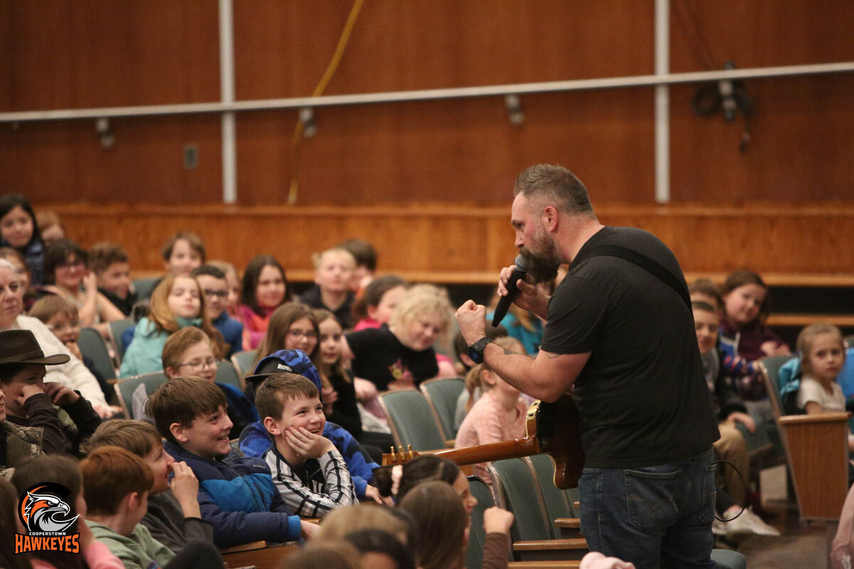 COOPERSTOWN – Cooperstown Elementary School students enjoyed a special visit from award-winning singer-songwriter Jared Campbell on Thursday, March 5, during two performances in the Junior-Senior High School Auditorium.