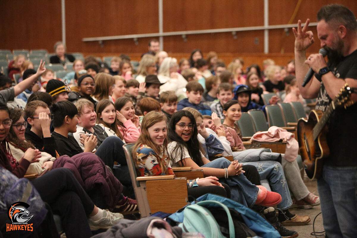 Campbell, who also visited Cooperstown last year, returned with his engaging and uplifting program that blends music, storytelling and important messages about kindness, resilience and character. Through interactive songs and conversation, students were encouraged to treat one another with respect and stand up against bullying.